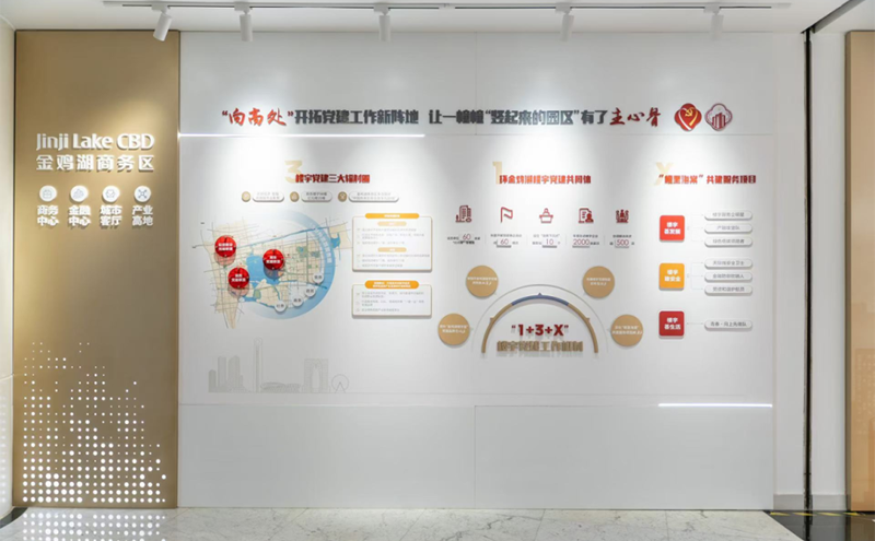 構建聯動機制,創新探索“1+3+X”樓宇黨建工作機制,依托“1”個環金雞湖樓宇黨建共同體,推動“湖東”“湖西”“陽澄數谷”“3”處樓宇黨建輻射圈建設,聚焦主責主業,牽頭相關職能部門組建七支黨員先鋒隊。