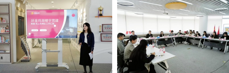 活動(dòng)中,與會(huì)人員共同回顧了2024年度樓宇黨建工作成果,了解2025年度“樓里海棠”共建服務(wù)項(xiàng)目清單。過(guò)去一年,商務(wù)區(qū)樓宇黨建工作創(chuàng)新發(fā)展、成果豐碩。商務(wù)區(qū)以“金雞湖樓宇薈”黨建品牌為引領(lǐng),創(chuàng)新探索“1 3 X”工作機(jī)制,圍繞思想引領(lǐng)、組織機(jī)制、服務(wù)項(xiàng)目、陣地建設(shè)四個(gè)方面精準(zhǔn)發(fā)力,有效助推黨建、經(jīng)濟(jì)、安全互促共融,七支“樓里海棠”黨員先鋒隊(duì)在其中發(fā)揮關(guān)鍵作用。同時(shí),商務(wù)區(qū)還通過(guò)理論宣講、外出考察、會(huì)議交流等方式,強(qiáng)化黨員干部理論武裝,借鑒先進(jìn)經(jīng)驗(yàn),落實(shí)責(zé)任擔(dān)當(dāng),優(yōu)化工作機(jī)制,進(jìn)一步豐富樓宇黨建品牌內(nèi)涵。