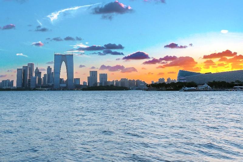 一條蘇州大道由古城向東跨越金雞湖,是貫穿園區(qū)東西方向的交通動(dòng)脈,在這條中軸線上,眾多金融大廈傲然挺立,豐富著城市“天際線”。