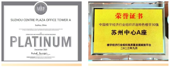 蘇州中心A座先后斬獲LEED運(yùn)營期既有建筑鉑金級認(rèn)證、LEEDBDC金級認(rèn)證以及中國綠色建筑星級認(rèn)證,入選“全國特色樓宇30強(qiáng)”,成為長三角首個同時擁有綠色認(rèn)證與運(yùn)營認(rèn)證的商辦綜合體。樓宇所在的蘇州中心項目打造業(yè)內(nèi)領(lǐng)先的建筑全生命周期數(shù)字智慧管理系統(tǒng)“心云平臺”。平臺上線后,通過數(shù)字化手段,實現(xiàn)樓宇能耗降低25%、節(jié)水效率提升30%。