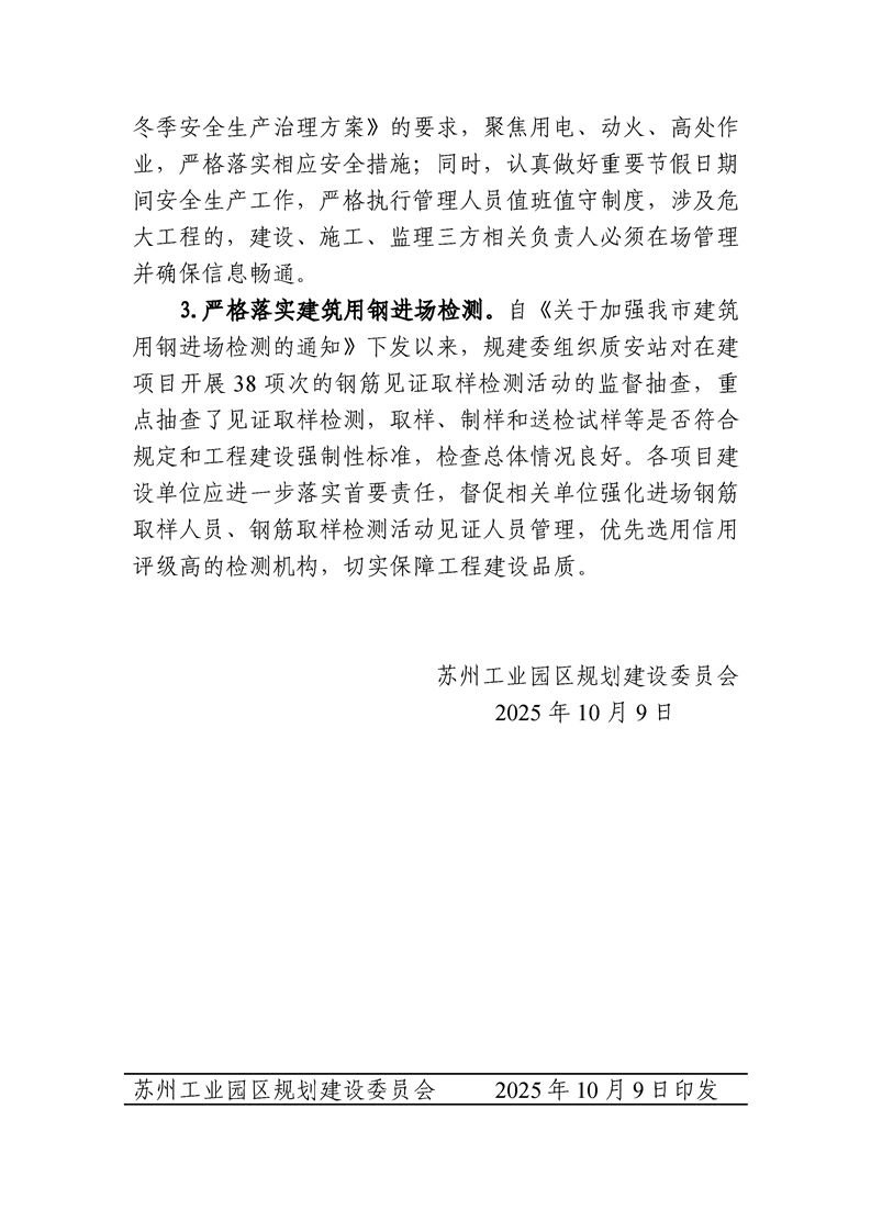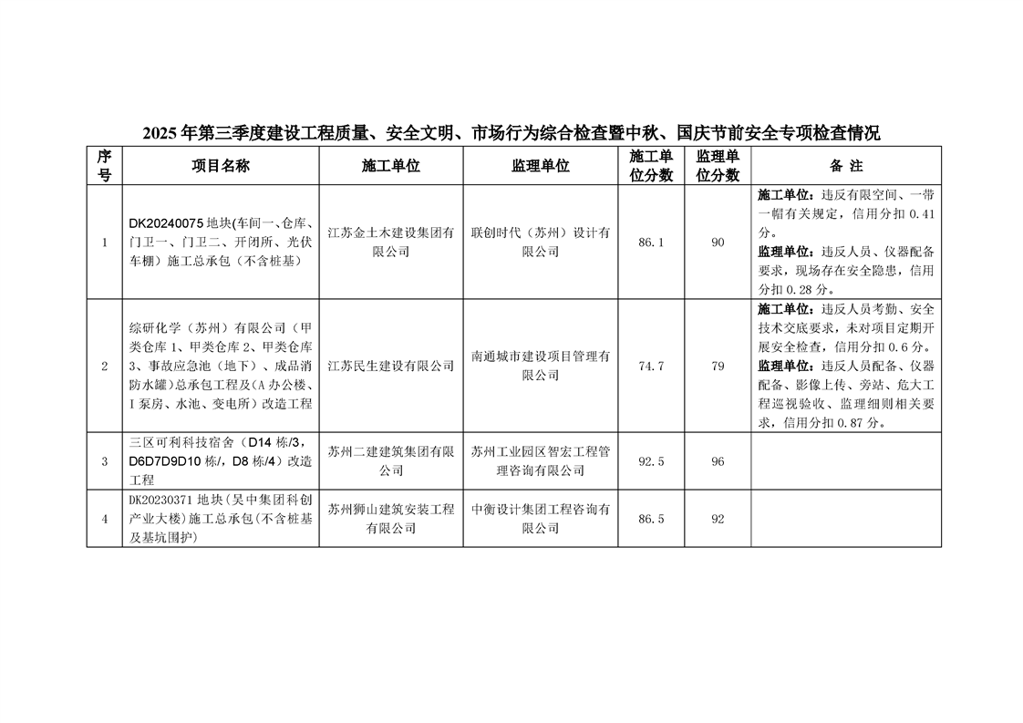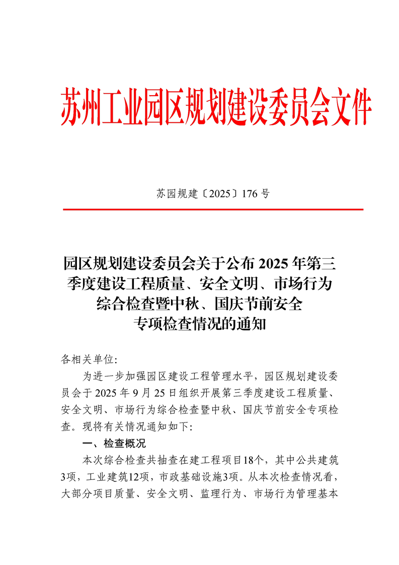 園區(qū)規(guī)劃建設(shè)委員會(huì)關(guān)于公布2025年三季度建設(shè)工程質(zhì)量、安全文明、市場(chǎng)行為綜合檢查暨中秋、國慶節(jié)前安全專項(xiàng)檢查情況的通知