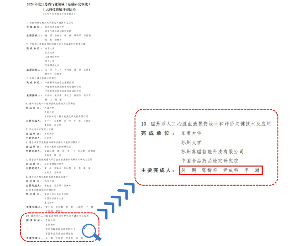 “磁懸浮人工心臟血液損傷設(shè)計和評價關(guān)鍵技術(shù)及應(yīng)用”項目由東南大學(xué)、蘇州大學(xué)、蘇磁科技與中國食品藥品檢定研究院聯(lián)合攻關(guān),解決了人工心臟血液損傷難以量化評估的技術(shù)瓶頸,體現(xiàn)了我國在高端醫(yī)療裝備核心技術(shù)領(lǐng)域的自主創(chuàng)新實力,充分彰顯了產(chǎn)學(xué)研協(xié)同創(chuàng)新的成效。