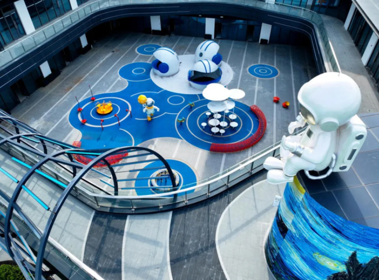 在家門口就能享受幸福生活,休閑娛樂自然也不能少,為此,鄰里中心精心引入漕湖壹號臺球俱樂部、優家寶貝親子游樂場等多元業態。此外,項目還在二層特別打造了航天主題兒童樂園,以明快活潑的設計風格融入宇航員元素,并設置多個互動式“網紅打卡點”,為親子家庭提供沉浸式游樂體驗。