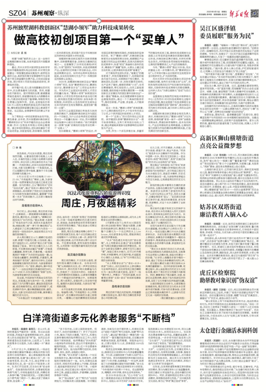 對于高校師生團隊而言,“被看見”的概率更高了,申報的難度降低了,但獲取的服務內容不僅充實,還照顧到個性化需求。當高校團隊邁出第一步,協助完善項目架構;當產品有了雛形,鏈接資源做“小試”;當項目需要融資,幫忙找投資人;當員工面臨居住難題,提供房租補貼等優惠政策……科教創新區立足轄區內的園區青年創新創業“一港十基地”等載體,依托獨墅湖青年創新創業港服務團隊,通過一個個具體的服務環節,推動創新鏈、產業鏈、資金鏈、人才鏈深度融合。