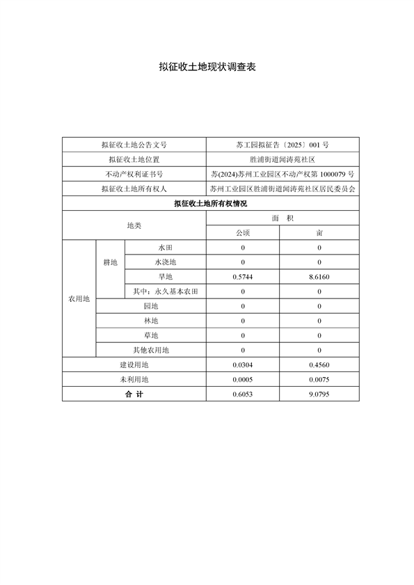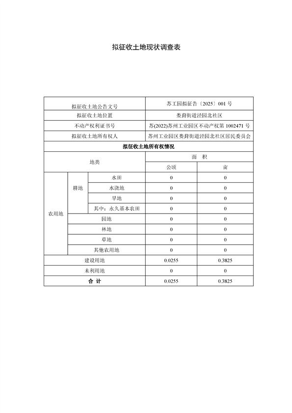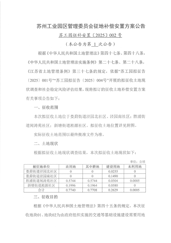 蘇州工業園區2025年度第3批次城市建設用地--蘇州工業園區管理委員會征地補償安置方案公告(蘇工園征補安置〔2025〕002號)