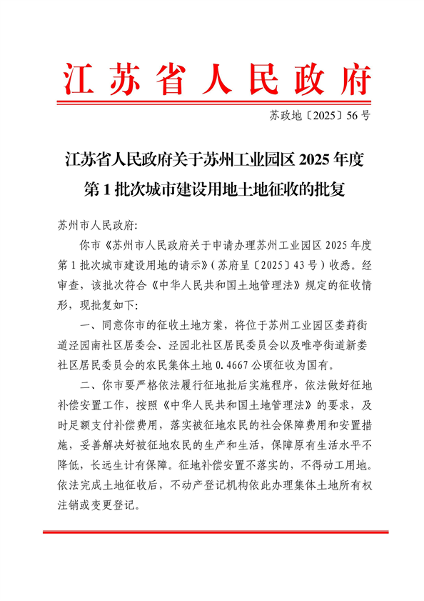 蘇州工業園區2025年度第1批次城市建設用地-批文