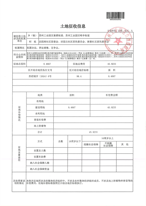 蘇州工業園區2025年度第1批次城市建設用地-報批材料