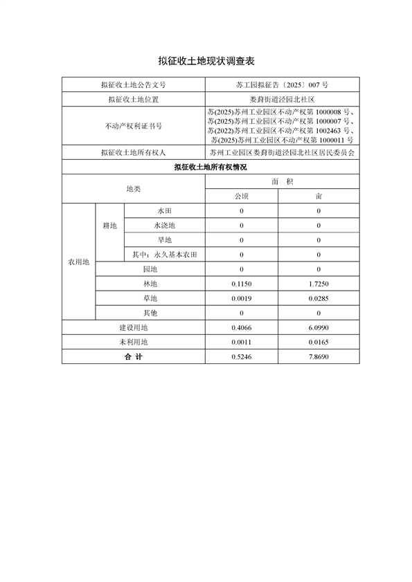 蘇州工業園區2025年度第8批次城市建設用地--蘇州工業園區管理委員會征地補償安置方案公告(蘇工園征補安置〔2025〕005號)