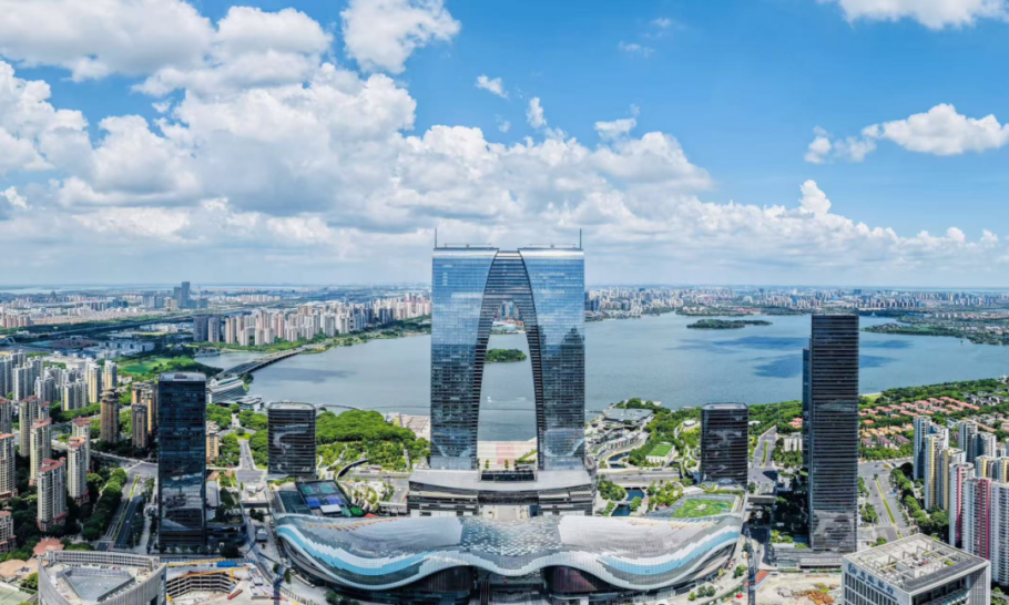 作為水鄉(xiāng)上崛起的現(xiàn)代化新城,園區(qū)河流縱橫、水網(wǎng)密集,擁有金雞湖、獨(dú)墅湖、陽澄湖等骨干河流,湖面與周邊錯(cuò)落的生態(tài)景觀帶相映成趣,勾勒出了一幅“人水和諧”的生態(tài)畫卷。