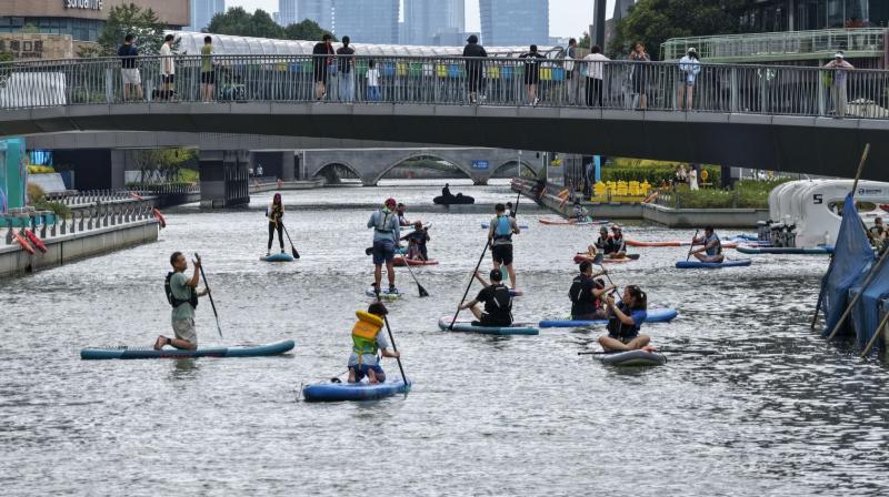 從上班族到親子家庭,從戶外愛好者到運動新手,中央河水上運動以安全性與趣味性,吸引了各年齡段人群參與,呈現“全民親水”的熱鬧場景。