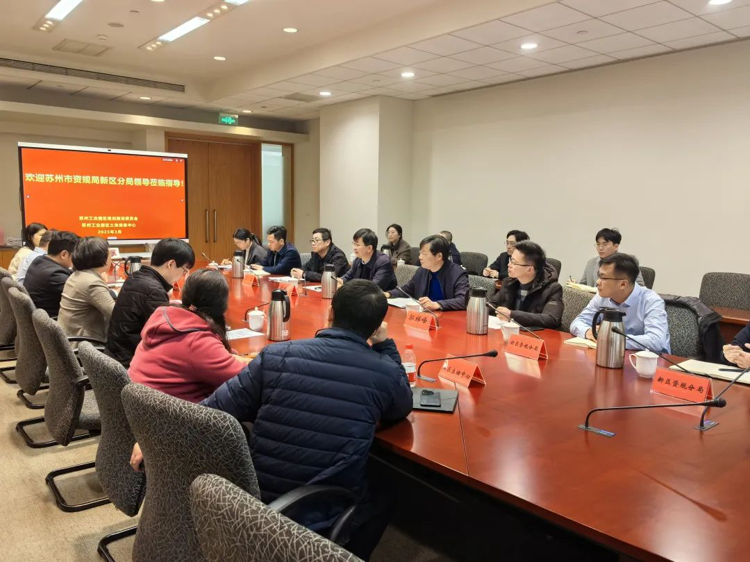 3月5日,蘇州市自然資源和規劃局蘇州高新區(虎丘)分局黨組成員、副局長劉文斌和土地儲備中心主任許永良一行蒞臨蘇州工業園區規劃建設委員會,就園區土地資源數字化管理工作經驗和土地資源管理系統“資信通”建設經驗進行交流學習。蘇州工業園區規劃建設委員會分管領導楊雪杏、土地儲備中心主任王江洋等陪同。