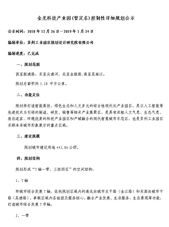 金光科技產(chǎn)業(yè)園(暫定名)控制性詳細(xì)規(guī)劃公示(一)