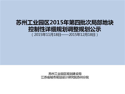 蘇州工業(yè)園區(qū)2015年第四批次局部地塊控制性詳細規(guī)劃調(diào)整公示(一)
