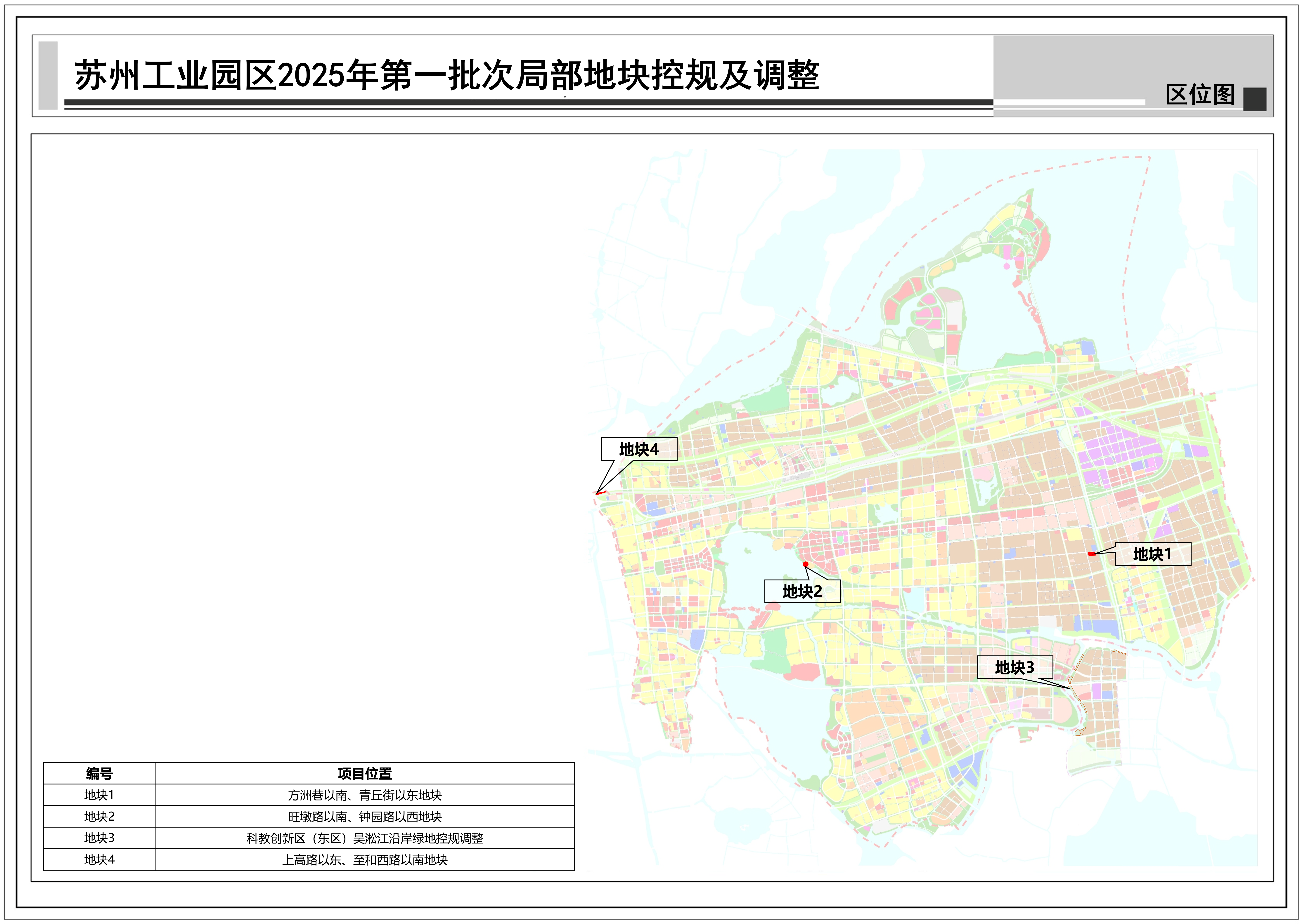 蘇州工業(yè)園區(qū)2025年第一批次局部地塊控規(guī)及調(diào)整:共包括4個地塊,總用地面積約0.20平方公里,詳見附圖區(qū)位圖。