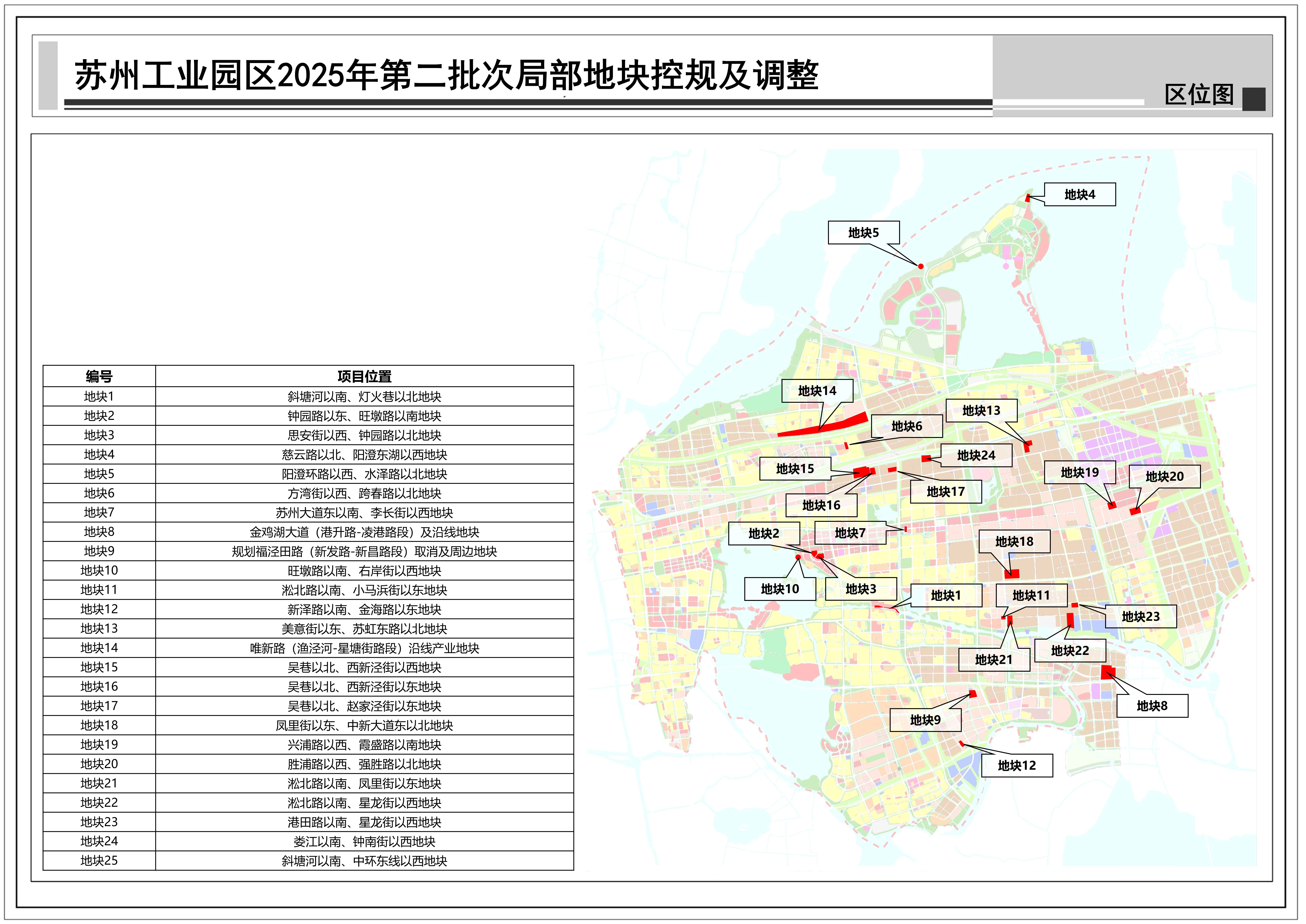 蘇州工業園區2025年第二批次局部地塊控規及調整:共包括25個地塊,總用地面積約1.76平方公里,詳見附圖區位圖。