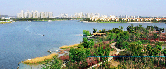 金鶏湖地域の総面積は約12平方キロであり、その內湖面面積は約7平方キロある。金鶏湖を中心とした湖浜大道、李公堤、水巷隣里等の湖岸景観の及び湖に浮かぶ島の景観と結び合い、この地域を商業、観光、水上スボーツ、レジャー、飲食を一體化としたウォーターフロントビジネスエリアに発展させる。