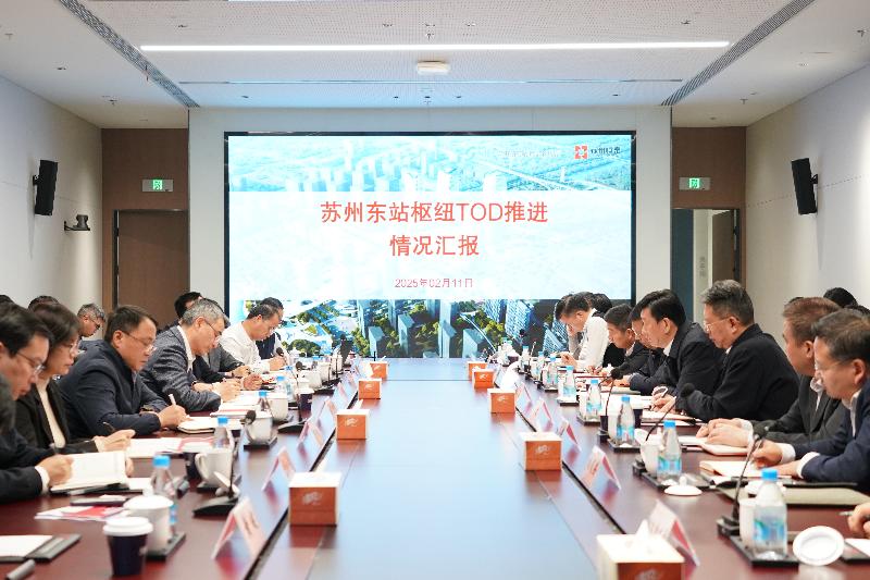 2月11日、蘇州市委員會常務委員、園區共産黨黨工作委員會書記の沈覓氏は蘇州東駅プロジェクトへ特別調査を行い、座談會を招集した。彼はここ數年間に園區の新規建設した鉄道と蘇州東駅プロジェクトの進捗狀況を実地で把握し、関係者の意見やアイデアを聞き取り、プロジェクトの高品質な開発建設を推進するために、共同で研究?検討を行った。