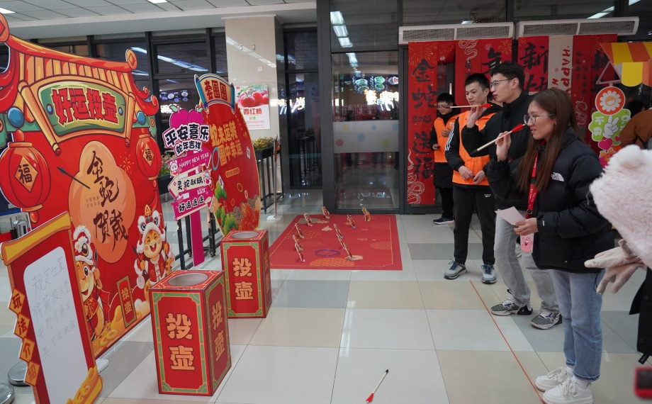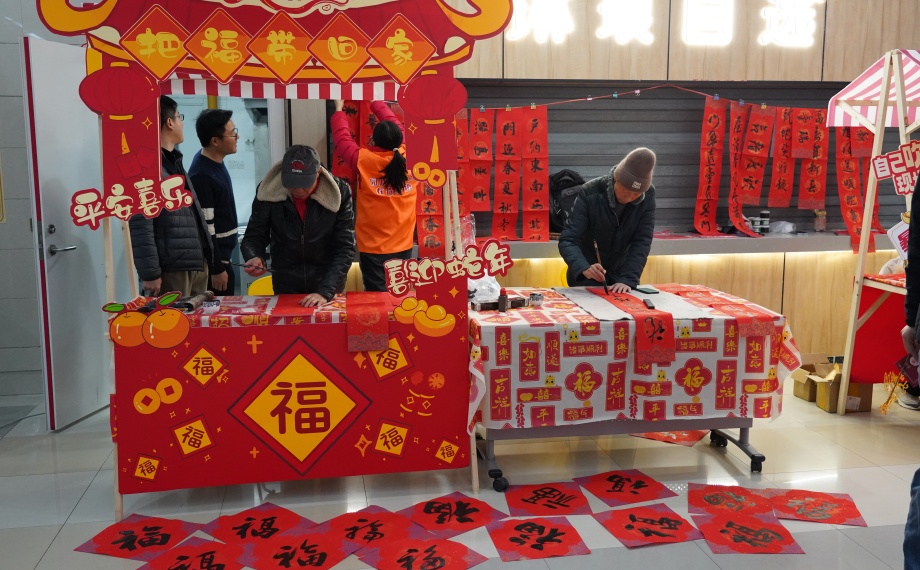 活動現(xiàn)場,團工委還為留蘇青年們準備了豐富多彩的暖心市集,現(xiàn)場歡聲笑語不斷。糖葫蘆、海棠糕、赤豆圓子……各類蘇式美食香氣四溢,投壺、套圈傳統(tǒng)游戲則吸引了眾多青年參與。在文化體驗區(qū),青年們在非遺老師的指導(dǎo)下,親手拓印新春“福”字,學(xué)習(xí)傳統(tǒng)技藝,感受江南文化的獨特魅力;新年祈福墻前,大家紛紛拿起筆,在許愿牌上寫下對新一年的美好期許;而新春全家福區(qū)域則為青年們定格下了這難得的團聚時刻,留下珍貴的回憶。員工舒女士表示:“這次活動很熱鬧、很暖心,雖然沒有回家,但在蘇州也能過一個有溫度、有年味的春節(jié)?!?/p>