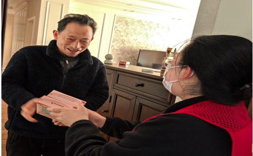 除了開展消防檢查,社區還積極開展安全宣傳活動。通過社區公告欄、微信群、公眾號等多種渠道,向居民普及消防安全、燃氣安全、用電安全等知識。提醒居民在春節期間注意用火、用電、用氣安全,做到人走電斷、火熄、氣關。此外,瓊姬墩開展了“敲門行動”,通過“敲門行動”與全面排查雙管齊下,全力做好春節前安全生產排查宣傳工作。上門時,社區工作人員對冬季燃氣安全、預防一氧化碳中毒知識進行了宣傳,提醒居民正確使用燃氣設備,保持通風良好,防止意外發生。在防范電信詐騙方面,通過宣傳常見詐騙手段,如網絡刷單、冒充公檢法詐騙等典型案例,提醒居民提高警惕,不輕易透露個人信息,遇到可疑情況及時報警。最后,工作人員都熱情地向居民送上了新春祝福,傳遞新春的美好祝愿。