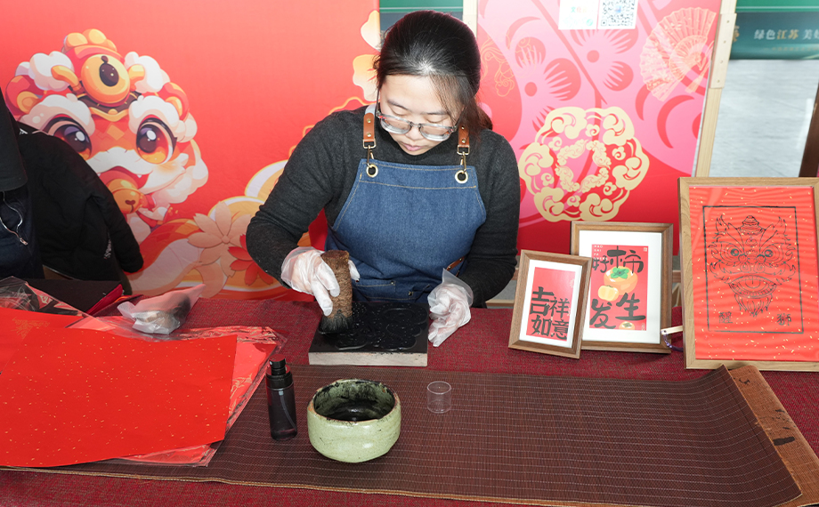 非遺拓印展示區,乘客們觀看上墨、鋪紙、拓印等環節,耐心等待每個制作過程,在墨香與紙張的交融中感受非遺傳承的深厚底蘊。西交利物浦大學的一位外教老師表示:“我對中國的拓印和書法很感興趣,研究過這些。今天我是計劃去上海的,在車站看到這些活動,非常驚喜。”