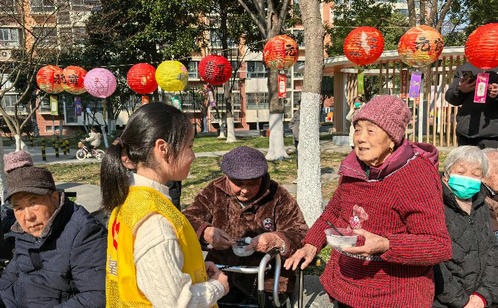 在美食兌獎(jiǎng)攤位前,大家排隊(duì)領(lǐng)取不同的美食小吃,熱氣騰騰的湯圓、奶香撲鼻的爆米花、酸甜可口的冰糖葫蘆都散發(fā)著誘人的香氣,團(tuán)員志愿者一邊煮著湯圓,一邊和居民聊天。芝麻餡的香甜軟糯,花生餡的醇厚濃郁,居民們品嘗著不同口味的湯圓,“星寶”志愿者們將湯圓送到居民手中,大家吃著甜甜的湯圓,感受著團(tuán)圓的溫暖。