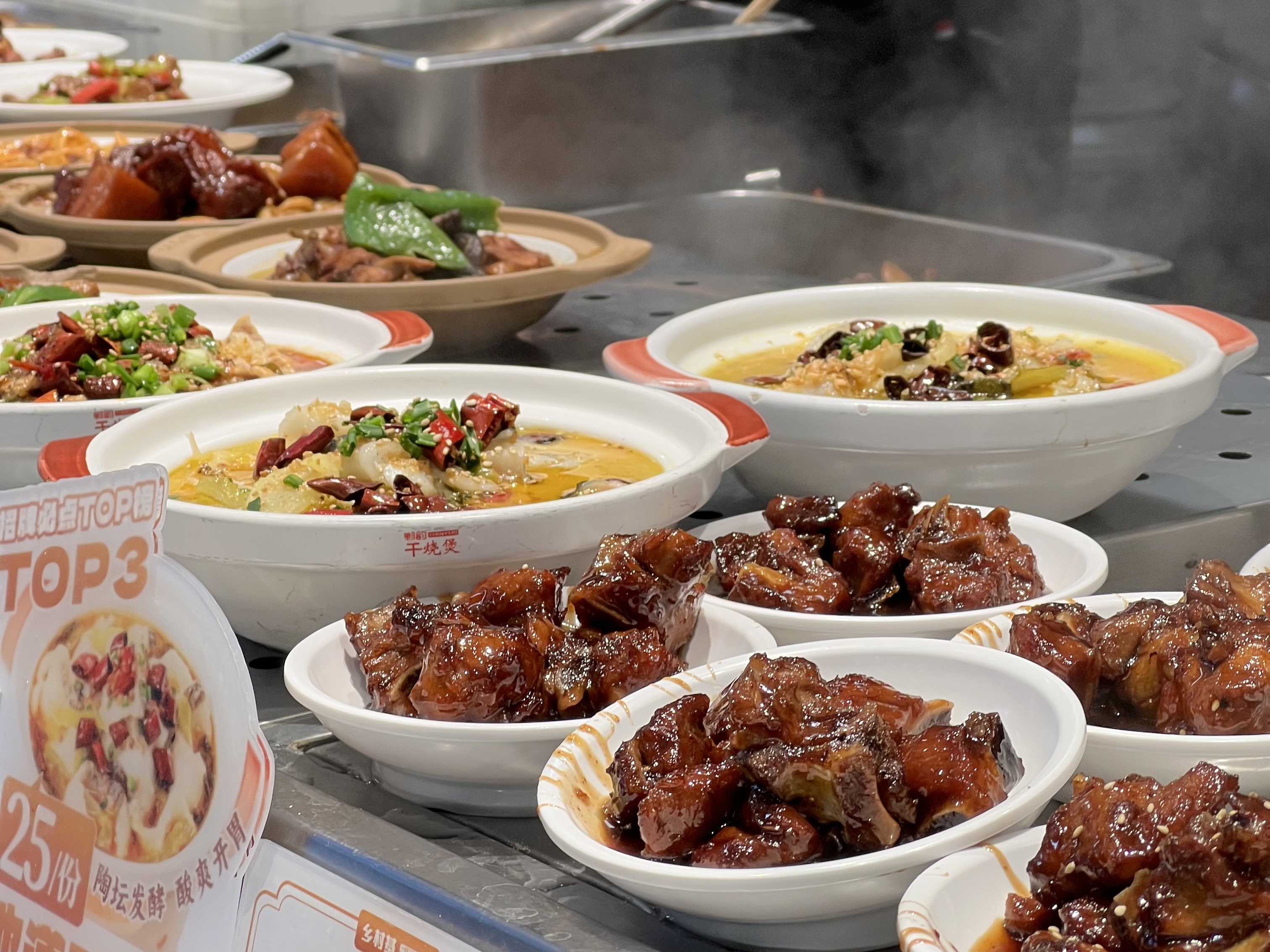 無辣不歡的朋友,麻辣香鍋就是“夢中情飯”,每一口都熱辣過癮;生燙牛肉米線同樣驚艷,新鮮牛肉在熱湯中迅速燙熟,嫩滑無比,米線爽滑勁道,湯鮮味美,喝上一口湯,整個人都暖乎乎的;雞公煲雞肉鮮嫩,鍋底醇厚,再煮上一份泡面,吸滿湯汁,一口下去,味蕾瞬間被點燃,幸福感爆棚……這里的美食不僅品類豐富多樣,價格還十分親民,十幾到三十幾元,就能讓打工人吃得心滿意足,性價比超高。