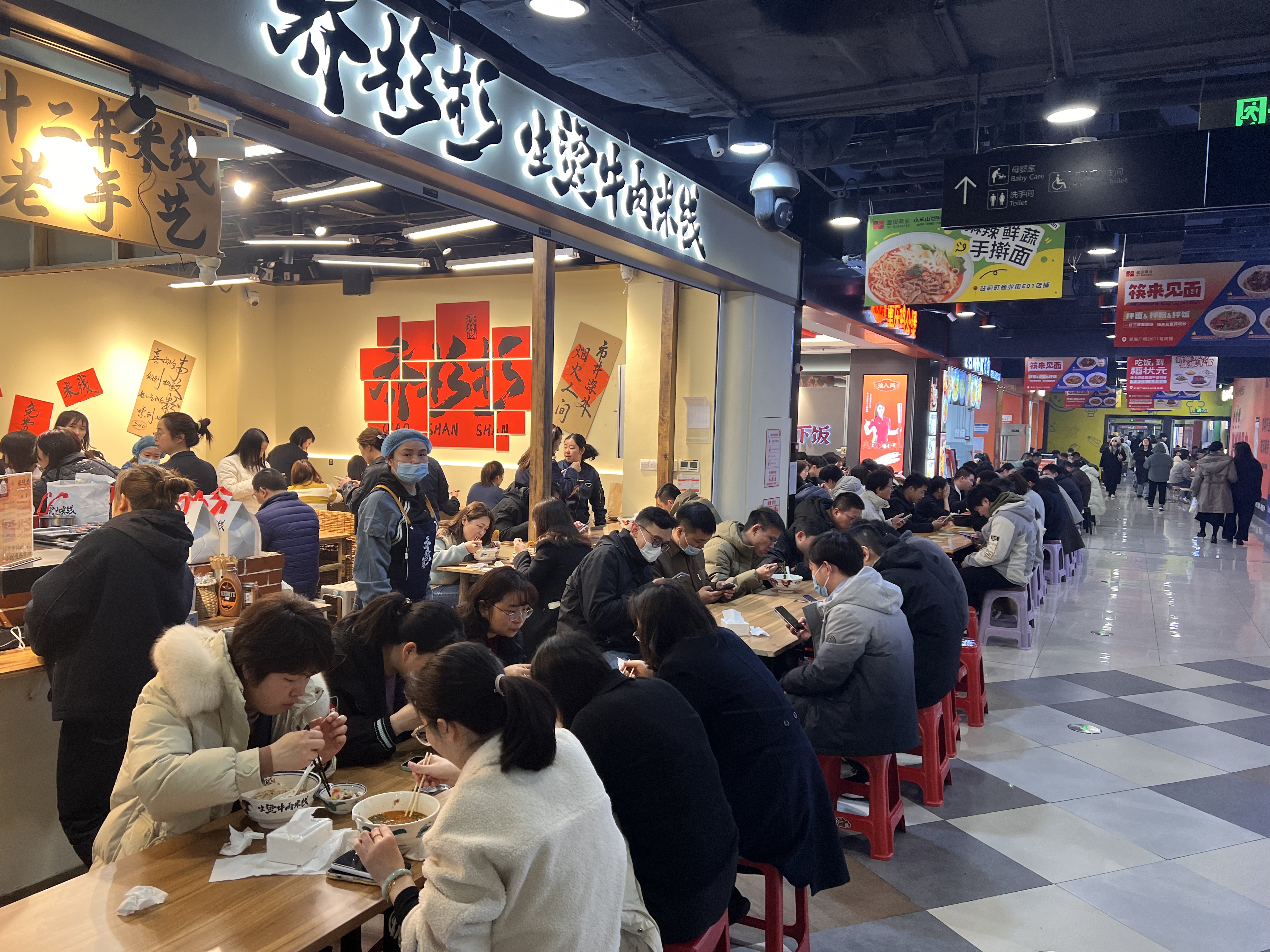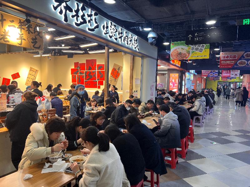站前町相關負責人透露,為了滿足周圍客群的口味需求,他們專門做了市場調查問卷?,F在的主力品牌,像米村拌飯、伊客來麻辣香鍋、稻狀元、擂飯、一米廚、喬杉杉生燙牛肉米線、渝八量重慶雞公煲、楊國福麻辣燙等,都是附近打工人的心頭好。