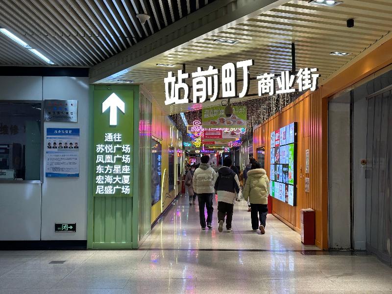 站前町位于軌道交通1號線星海廣場站,東入口直接連接星海廣場站站廳,西至星都街,可經營面積約8000平方米,其中餐飲占比約60%。街區巧妙利用軌道交通地下空間,打造了一片“輕消費”街區,完美滿足商務人士和周邊居民的日常消費和飲食需求。這里不僅是美食天地,還通過地下通道與周邊商業綜合體相連,極大提升了出行效率。目前已有54家商鋪入駐,是蘇州軌道交通開發的體量最大的地下商業街區,實現了地鐵與商業的雙贏。