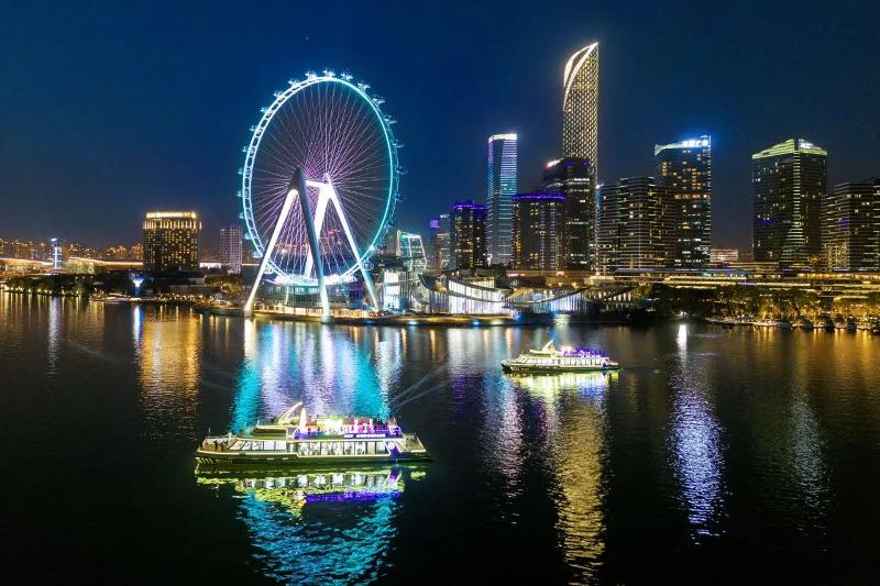 蘇州城東,金雞湖再次迎來驚喜蝶變——“蘇州之眼”摩天輪璀璨啟幕,金雞湖雙體游船浪漫啟航。高達128米的“蘇州之眼”,擘畫了金雞湖的“最美天際線”,映照出城市發展的新高度;新啟航的金雞湖雙體游船,則以全新視角,串聯起園區的現代繁華圖景。雙輪聯動,共同為金雞湖右岸增添了靈動時尚的色彩,成為彰顯城市魅力的新名片,撬動經濟發展的新引擎。“‘蘇州之眼’摩天輪的煥新升級,是園區日新月異高速發展的見證。它將為市民游客帶來更具科技感、現代感的新體驗,為蘇州人織就新的浪漫記憶。”園區宣傳部副部長、文體旅游局局長殷衛東表示,升級歸來的摩天輪將與金雞湖水上游,以及當代美術館、中環廣場、右岸客廳、“飛翔”雕塑等聯動,共同構成蘇州新的城市地標,成為各方來客“到蘇州必打卡之地”,同時也是蘇州向外展示城市形象的新名片、新窗口。關鍵詞:城市新地標...