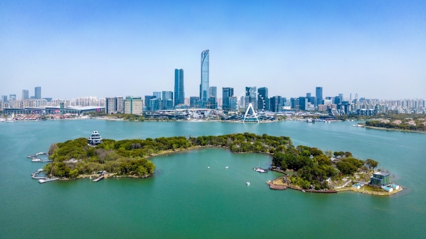 “園區(qū)即景區(qū)”,依托這一發(fā)展理念,園區(qū)的生態(tài)注腳體現(xiàn)在每一座公園、每一個(gè)街角和路口。四月初,桃花迎來盛放期,而園區(qū)欣賞桃花的最佳點(diǎn)位,正是眼前這一片湖心綠洲。桃花島占地10公頃,島內(nèi)遍植成百上千株桃花,另有海棠、櫻花、梨花等等。春季登島,看緋云浸染碧波,江南雅韻在眼前幻化成實(shí)景。