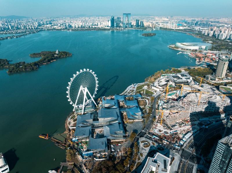 作為蘇州新的城市地標,“蘇州之眼”于近日正式對外開放。項目位處金雞湖右岸,由中銳集團攜手全球知名設計公司匠心打造,是全球第八座回轉式太空艙摩天輪,也是亞洲最大的水上摩天輪。“蘇州之眼”以128米的高度刷新城市天際線,可360度俯瞰金雞湖、園區,乃至蘇州全景。