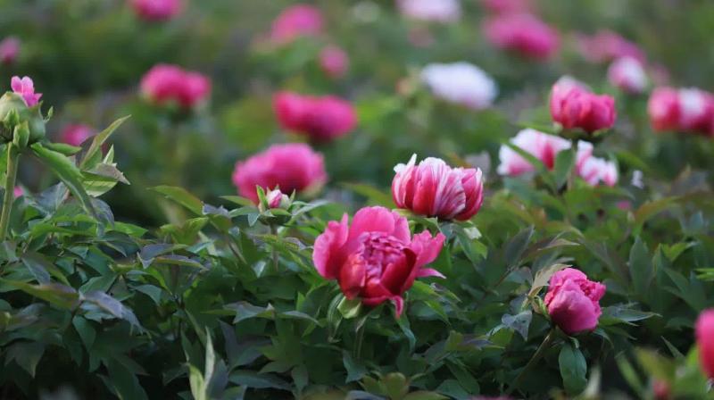 牡丹花朵雍容華貴,色彩艷麗,被譽(yù)為“花中之王”。金雞湖牡丹園的花朵盛開時(shí),仿佛一幅富麗堂皇的畫卷,令人嘆為觀止。