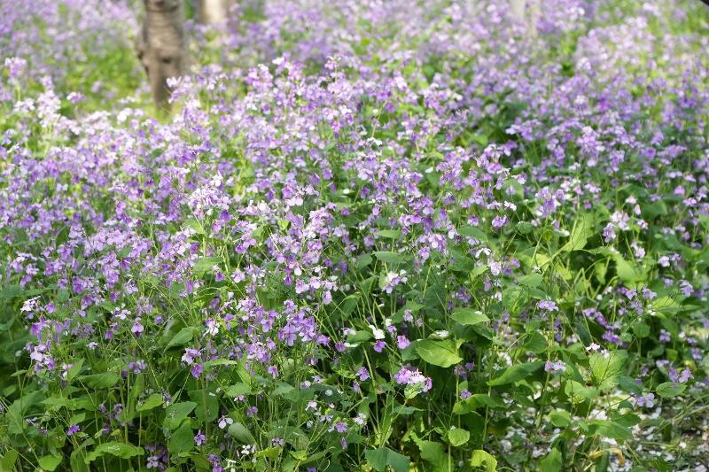 成片的二月蘭盛開時(shí)如同一片紫色的海洋,在春風(fēng)中起伏蕩漾,充滿了神秘與浪漫的氣息。