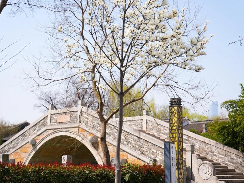 早春時(shí)節(jié),玉蘭樹挺拔而立,花朵潔白如玉,散發(fā)出淡淡的清香。在園區(qū)的各個(gè)角落,都能看到玉蘭花的身影。漫步其中,陽(yáng)光透過(guò)花瓣灑下,光影斑駁,仿佛置身于一幅精致的畫卷之中。