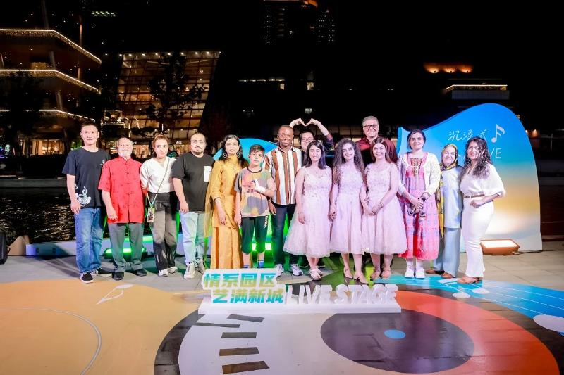 在圓融天幕街,每周上演的“藝術(shù)盲盒”演出正重新定義公共空間屬性。2025年煥新升級的“YI說園區(qū)”Live Stage,通過三維沉浸式藝術(shù)現(xiàn)場打破觀演邊界,百米天幕與電子音浪交織,爵士樂與暮色共舞,吸引數(shù)千市民共享藝術(shù)之夜。活動創(chuàng)新設(shè)立的“煙火民星”計劃,讓科研人員、醫(yī)護工作者等普通市民成為舞臺主角。在五月的“情系園區(qū) 藝滿新城”活動中,在蘇外籍友人與本地藝術(shù)愛好者的跨文化演繹,更彰顯園區(qū)“國際范”與“江南韻”的共生魅力。