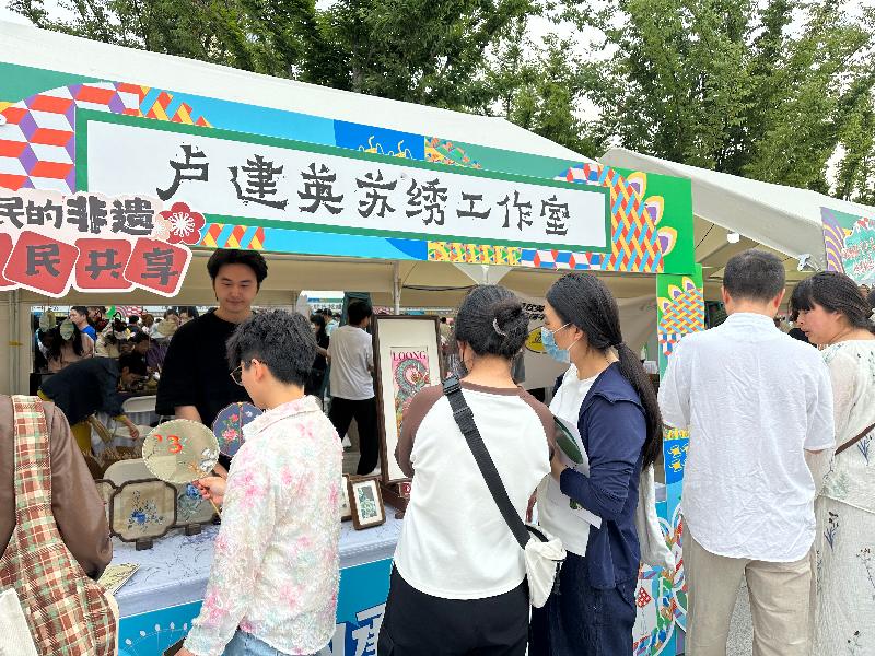非遺新生代也帶來了眾多精彩創(chuàng)作。盧建英蘇繡工作室以龍年為主題二次創(chuàng)作的蘇繡作品,色彩明艷,造型新穎。蘇繡第四代傳承人潘乃舒介紹說:“這幅龍元素作品,正好迎合龍舟賽的主題,今天好多年輕人都被吸引過來,拿著手機不停地拍照打卡。”此外,雙面繡團扇《事事如意》、栩栩如生的龍舟競渡蛋雕作品、散發(fā)著淡淡清香的古法制香療愈系香囊等新生代作品,也讓游客們駐足觀賞,贊嘆不已。