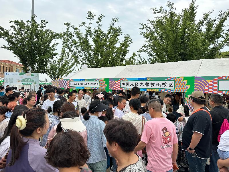 在文化傳承的舞臺上,高校力量與非遺新生代的雙向賦能成為一道亮麗的風(fēng)景線。在中國人民大學(xué)蘇州校區(qū)的攤位前,長隊如龍。該校澄懷國學(xué)社的同學(xué)們精心準備了投壺、飛花令、香囊制作等中國傳統(tǒng)民俗非遺限定體驗活動。蔣同學(xué)熱情地引導(dǎo)游客參與游戲,他介紹道:“我們希望把豐富多彩的中國傳統(tǒng)文化帶到市集上,讓更多人感受傳統(tǒng)文化的魅力。作為高校青年,我們有責(zé)任、有義務(wù)在文化傳播中勇當(dāng)先鋒,讓傳統(tǒng)文化在新時代綻放新光彩。”隔壁攤位的園區(qū)服務(wù)外包學(xué)院則充分發(fā)揮數(shù)字技術(shù)優(yōu)勢,打造“科技+文化”雙引擎?zhèn)鞒心J剑惶K州工藝美院青年學(xué)子帶來螺鈿鑲嵌、巖彩壁畫等精湛技藝,并推出“可帶走的蘇式美學(xué)”文創(chuàng)產(chǎn)品。一系列充滿創(chuàng)意的展示,展現(xiàn)出“00后”眼中別具一格的傳承新范式。
