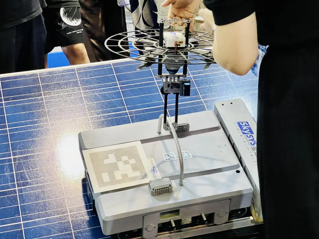 “這是我們最新研發(fā)的光伏面板清潔機(jī)器人,通過(guò)‘搭乘’無(wú)人機(jī)的方式將其投放到光伏面板上進(jìn)行自動(dòng)清潔,結(jié)束后無(wú)人機(jī)還可以復(fù)檢清潔效果?!痹谛沁壷悄苷古_(tái),公司COO劉宇濤一邊講解,一邊向記者展示清潔機(jī)器人是如何被無(wú)人機(jī)抓取,從而實(shí)現(xiàn)“打飛的”作業(yè)。