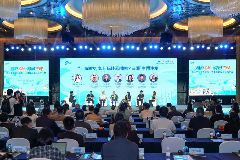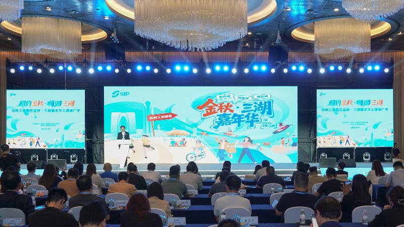 9月19日,由蘇州工業園區文體旅游局、園區商務局共同主辦的“金秋?三湖嘉年華”上海推廣季在上海中心大廈舉辦?;顒右浴跋嗉s金秋?嗨游三湖”為主題,通過精彩的文旅推介和豐富的互動環節,充分展現園區三湖的獨特魅力,并推出多項惠民禮遇,向上海市民發出誠摯的秋日邀約。園區黨工委委員、管委會副主任、宣傳部部長朱江出席活動。上海市旅游行業協會及各區旅游協會的會長代表,上海錦江、春秋、中青旅等頭部旅行商負責人,攜程、同程、美團、飛豬等文旅電商企業代表,多位文旅、生活類知名KOL,以及上海知名研學機構、旅游俱樂部、招商合作單位、重點合作企業代表等參加活動。