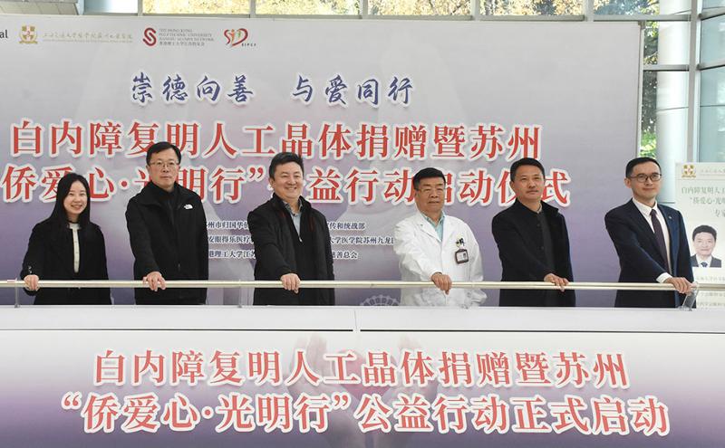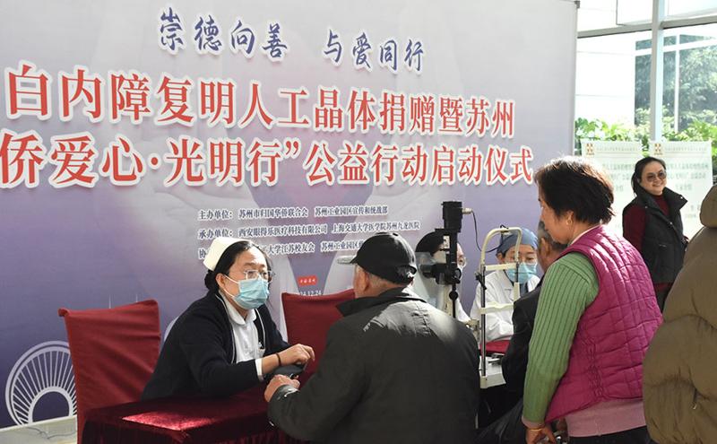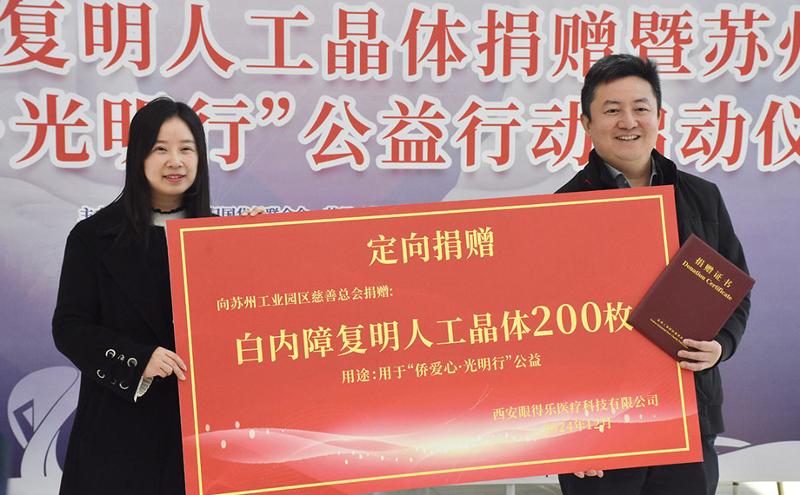 崇德向善,與愛同行。12月24日上午,蘇州“僑愛心·光明行”公益行動啟動儀式在蘇州工業園區舉行。現場,愛心企業西安眼得樂醫療科技公司向蘇州工業園區慈善總會定向捐贈白內障復明人工晶體200枚,后續將由蘇州九龍醫院推進落實,惠及在蘇僑胞及全市眼部疾病患者。