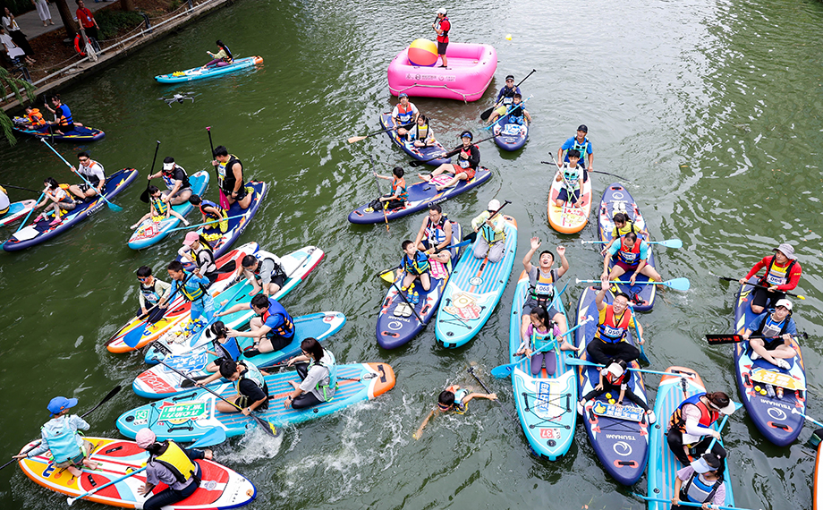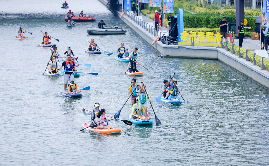 近年來,園區積極構建“政府引導+俱樂部專業化運營”的水上運動發展模式,通過引入專業機構,打造規范化、安全化的親水運動環境。本次賽事在河岸休閑區規劃“水岸靈動市集”,涵蓋自行車、拳擊、馬術、網球等多項運動,同時設置戶外運動展銷區,形成集運動、親子、消費于一體的城市水上嘉年華,促進了不同產業間的相互滲透和協同發展,彰顯園區文體旅商融合發展的蓬勃生機。