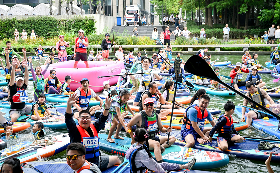 秋陽和煦,碧波輕漾,9月13日上午,蘇州工業園區中央河上迎來一場充滿歡聲笑語的“2025中央河潮運會?家庭槳板挑戰賽”。作為金秋?三湖嘉年華首場活動,賽事以“親子協同、運動快樂、水岸融合”為主線,設置“完賽競技+趣味體驗”的豐富環節,吸引100組親子家庭揮槳競逐,暢享親水時光。