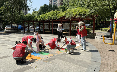 活動(dòng)當(dāng)天,親子家庭身穿志愿紅馬甲,手持彩漆桶在改造點(diǎn)位忙碌著。孩子們?cè)诩议L(zhǎng)協(xié)助下先在地上鋪設(shè)繪制模具,再選出自己喜歡的彩漆顏色,耐心地在模具上繪制趣味涂鴉,將冰冷地面變?yōu)?/font>“和諧靈動(dòng)的互動(dòng)標(biāo)識(shí)”,這一行動(dòng)不僅提升了社區(qū)顏值與趣味性,更培育了青少年的創(chuàng)造力。一位居民感慨:“這不只是美化家園,更讓我們找到了歸屬感!”社區(qū)通過代際協(xié)作重塑社區(qū)文化,為后續(xù)科技、親子活動(dòng)奠定“共享共治”的群眾基礎(chǔ)。