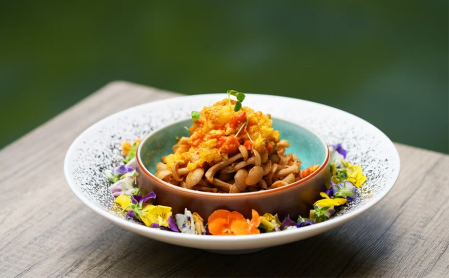 第二味·鮮趣碰撞:蟹膏干撈白玉菇