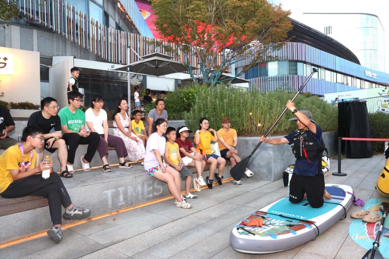 “槳板體驗(yàn)真的非常開心,劃行過程中能一路欣賞園區(qū)的夜景。湖面的風(fēng)吹著特別舒適,是工作之余放松休閑的好方式。”一位剛結(jié)束體驗(yàn)的市民贊嘆道。