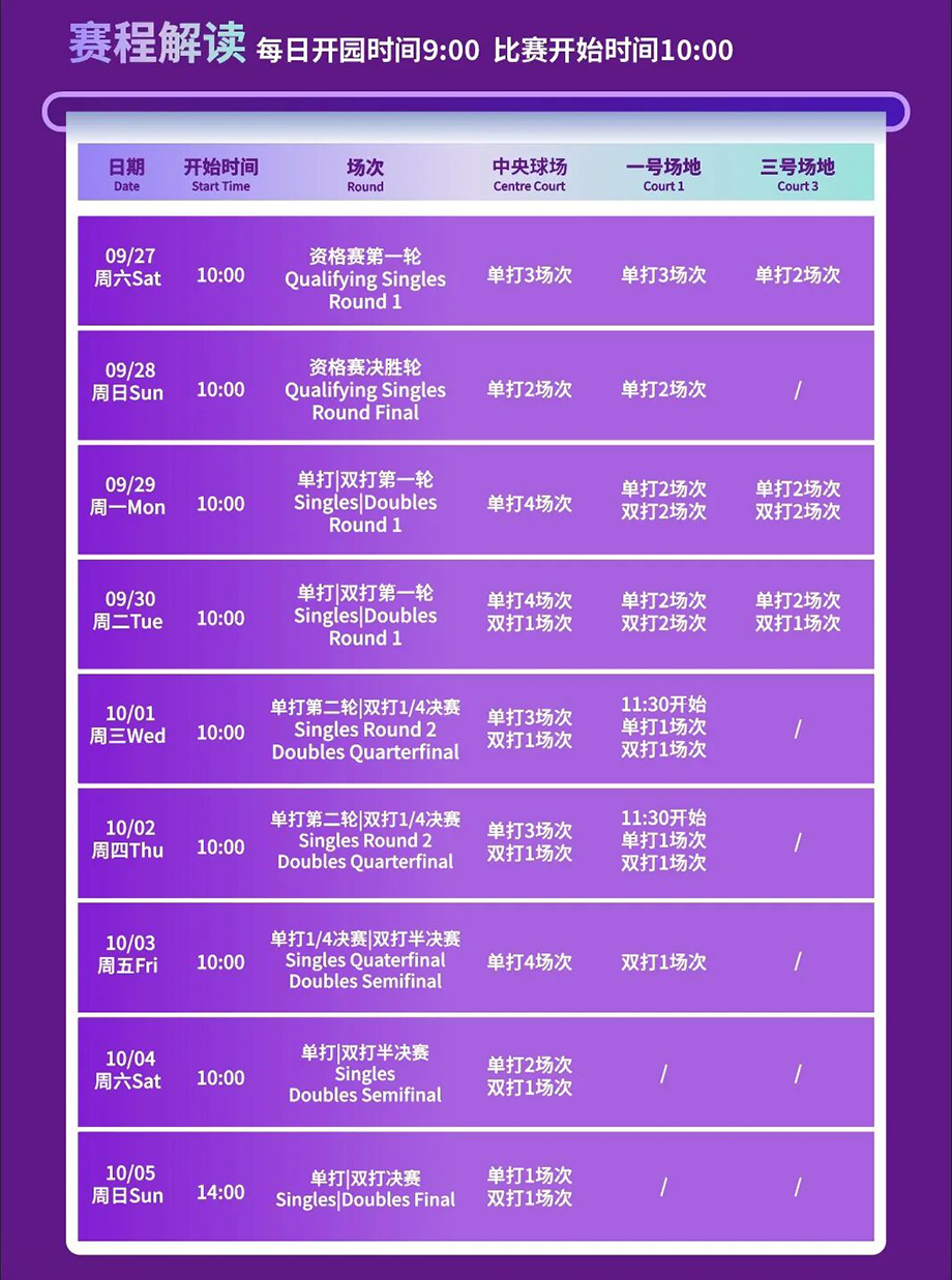 9月29日起 正賽全面開啟單打雙打齊上陣