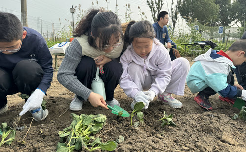 游戲熱身之后,活動進入充滿教育意義的農耕實踐環節。田園導師手持菜苗,在專門劃分的農耕區為親子家庭講解蔬菜種植的小知識:“栽苗前要先把土松透,坑的深度要剛好沒過菜苗的根部,這樣才能讓菜苗穩穩扎根……”