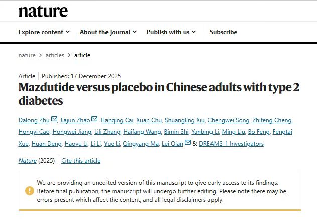 12月18日,由蘇州工業園區領先創新藥企信達生物與中國內分泌和代謝領域的權威專家、頂尖科研機構共同合作的瑪仕度肽兩項Ⅲ期臨床研究成果,登上國際科學頂級學術期刊《自然》(Nature)。該成果不僅是《自然》創刊以來首次在代謝內分泌領域背靠背發表兩項Ⅲ期臨床研究,更使瑪仕度肽成為全球唯一同時登頂《自然》與《新英格蘭醫學雜志》(NEJM)的GLP-1類藥物,彰顯中國在代謝疾病治療領域的原始創新能力與臨床研究實力。