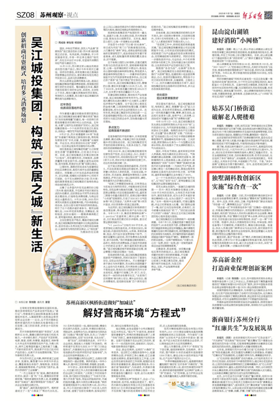 日前,蘇州獨墅湖科教創新區針對企業安全檢查等相關事項,創新推出“慧聯機制”監管服務體系。其中,應急、環保、消防、衛健、市監等多部門聯合實施的“綜合查一次”,贏得轄區企業廣泛好評。
