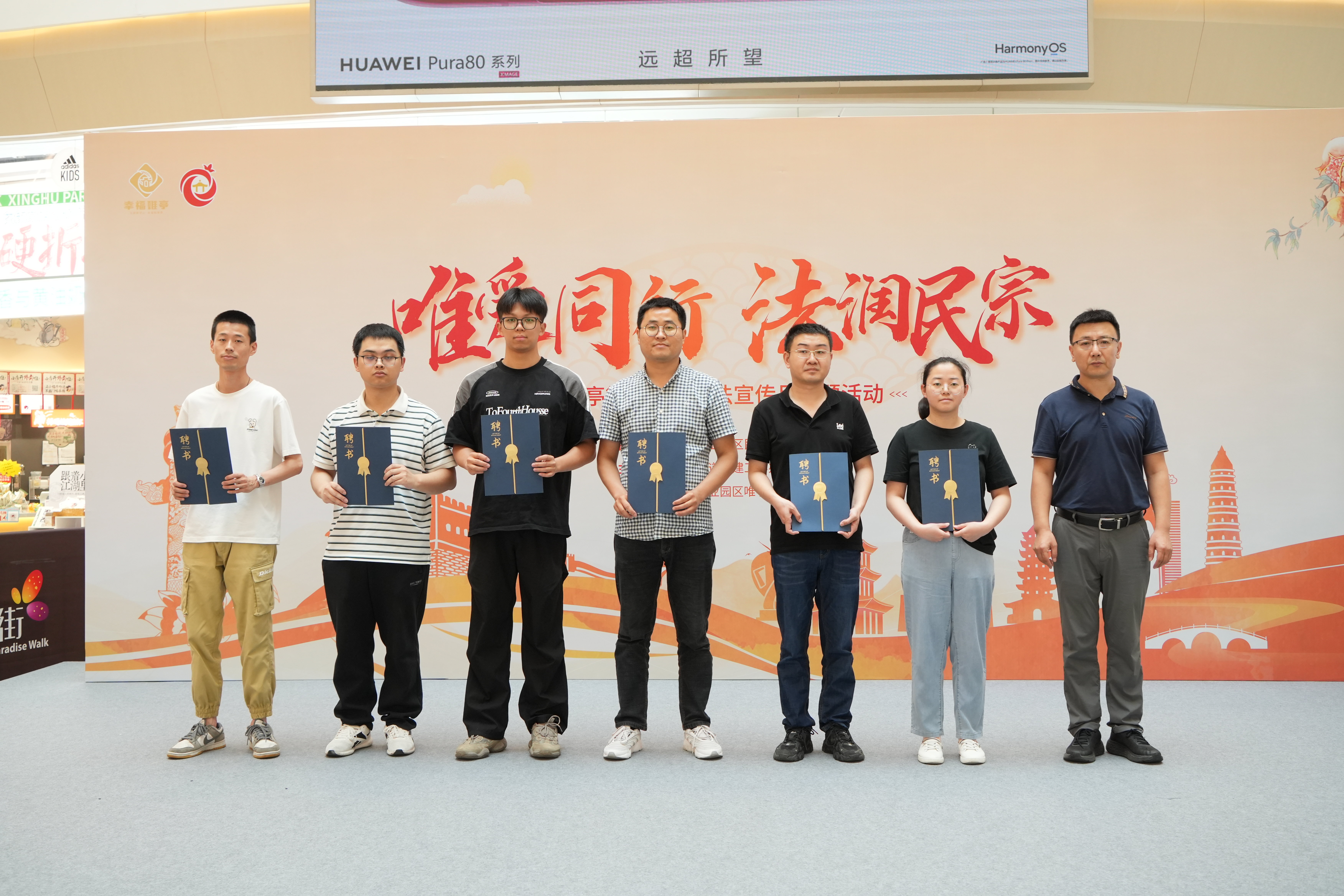 活動現場,唯亭街道統戰委員向6名社區網格普法宣傳員頒發了聘書,旨在通過打造一支業務精通、善于宣講的政策法規宣傳員隊伍,促進街道民宗政策法規宣教工作高效、有序推進。